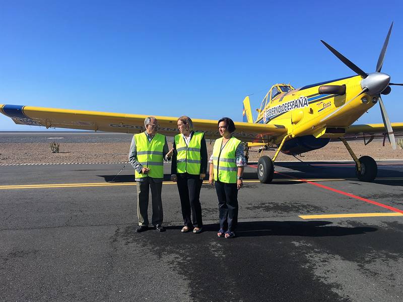 Mercedes Roldós presenta el avión de carga en tierra para la lucha contra incendios forestales en las Islas