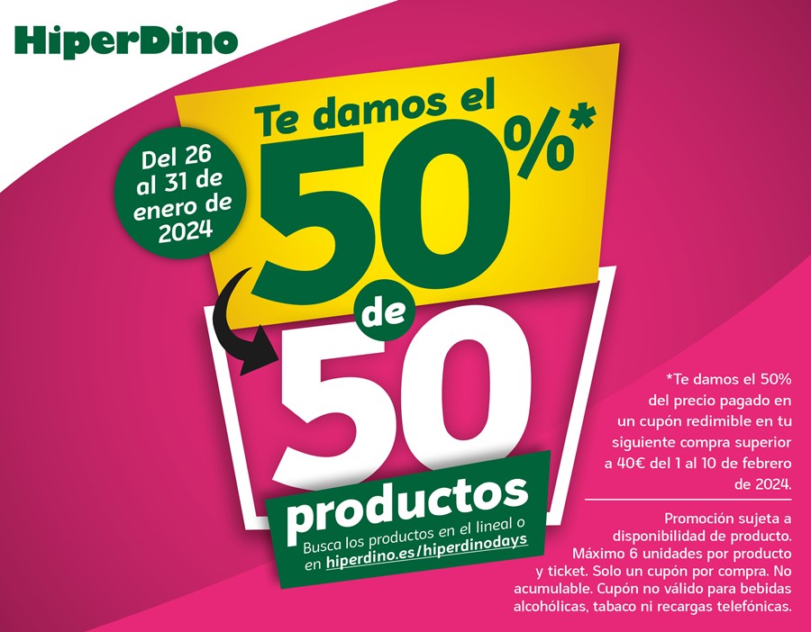 50 productos al 50% solo en HiperDino