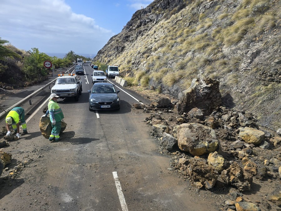 Cortada la LP-5 por un desprendimiento a dos kilómetros del aeropuerto