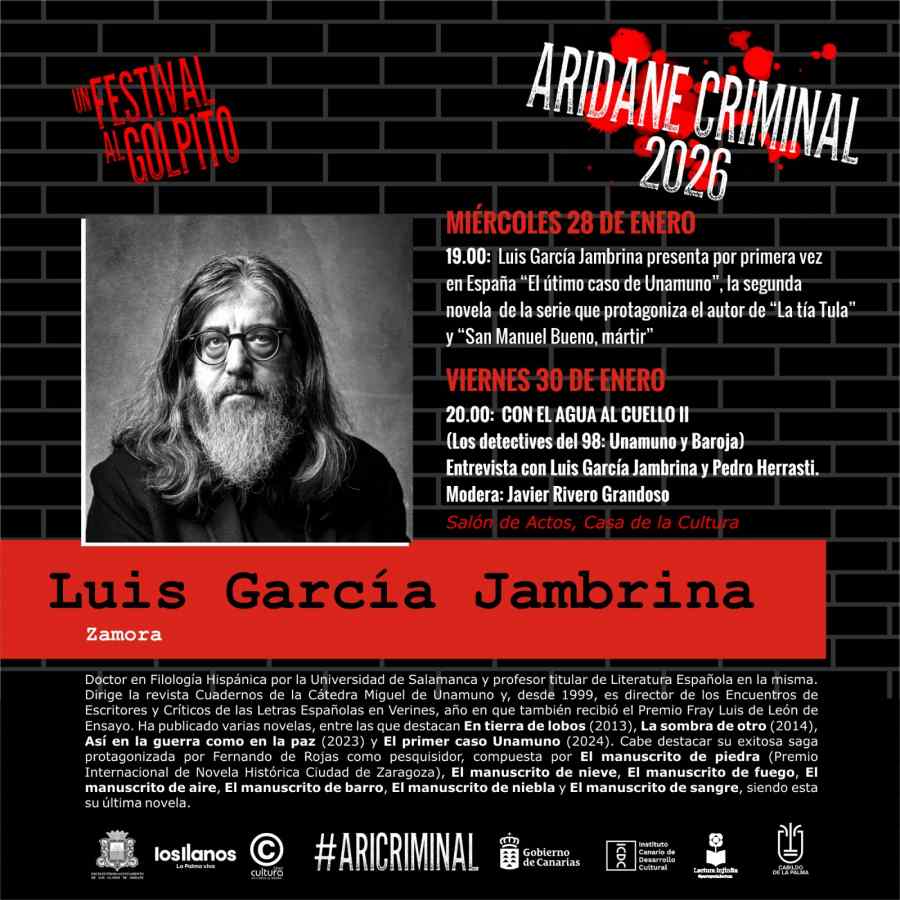 Luis García Jambrina presenta en primicia ‘El último caso de Unamuno en Aridane Criminal VI