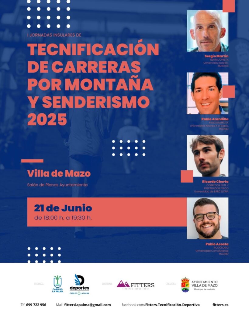 Por otro lado, participará el director clínico de Podoactiva La Palma, Pablo Acosta, que dará su punto de vista sobre la podología deportiva en todos sus términos. Por último, el corredor profesional valenciano Ricardo Cherta contará sus experiencias en esta modalidad y cómo consiguió compaginar su vida de deportista profesional y los estudios, entre los que destacan varios másters en rendimiento deportivo.