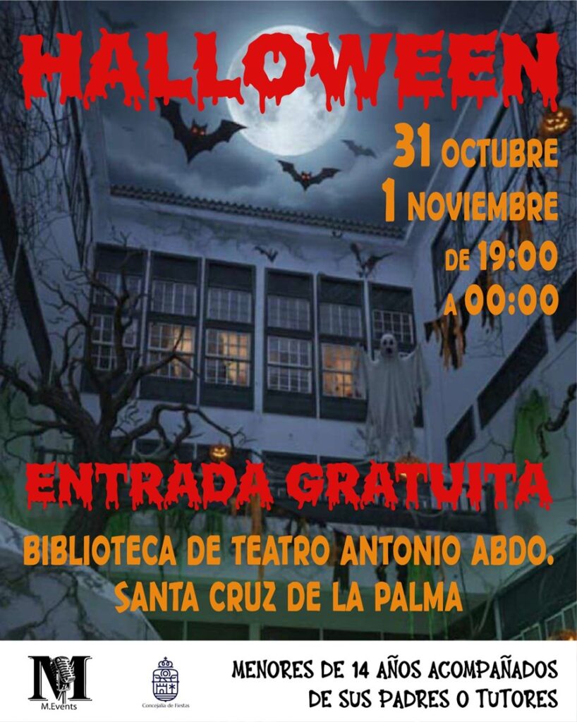 Santa Cruz de La Palma prepara una de las citas más esperadas del año para los amantes del miedo: la casa del terror ‘El Colegio Encantado’. Esta actividad, organizada por la Concejalía de Fiestas que coordina el concejal Raico Arrocha, tendrá lugar los próximos 31 de octubre y 1 de noviembre en la biblioteca de teatro Antonio Abdo. Además, hay que destacar que se desarrollará entre las 19:00 y las 00:00 horas durante los días señalados, con entrada gratuita y sin necesidad de inscripción previa.